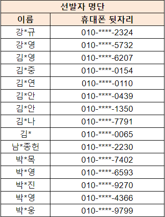다. 선발자에 한해 휴대폰 문자 개별 통보