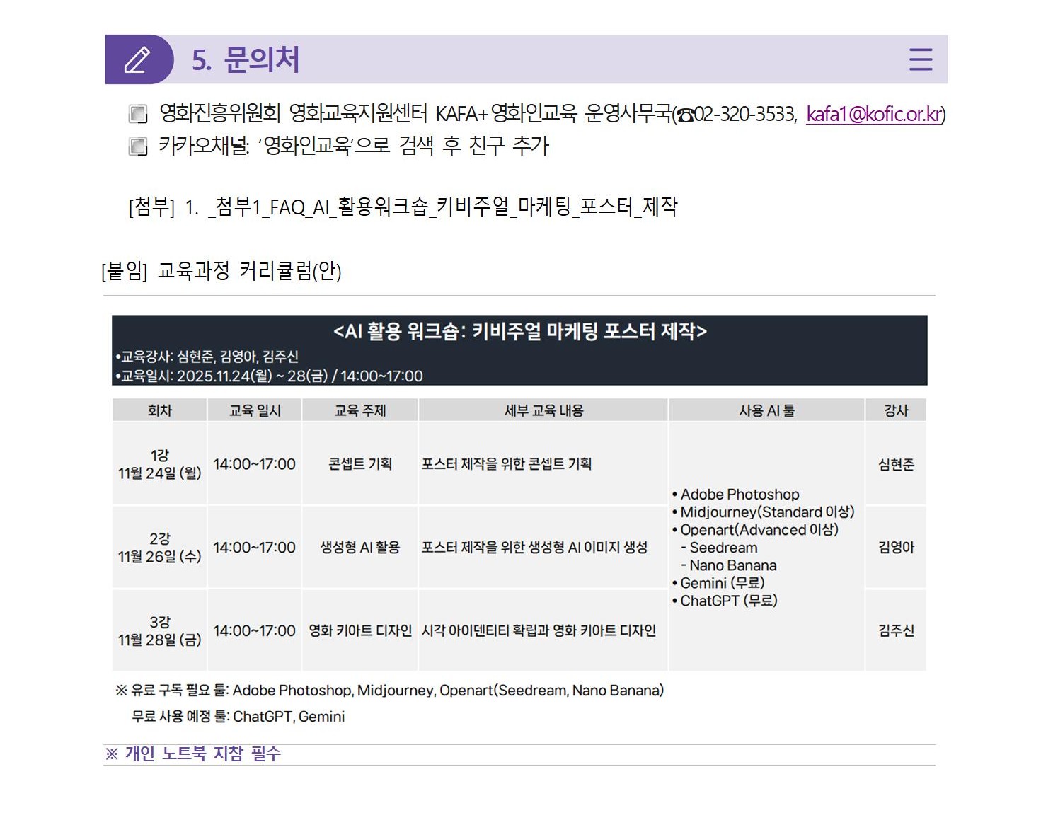 KAFA는 한국을 대표하는 영화 학교입니다.