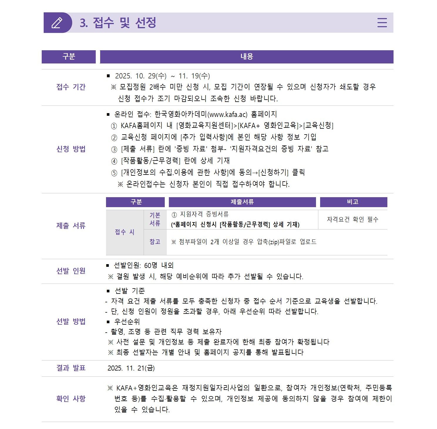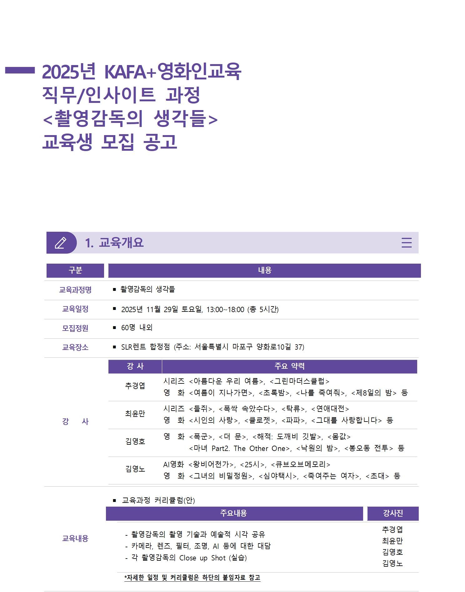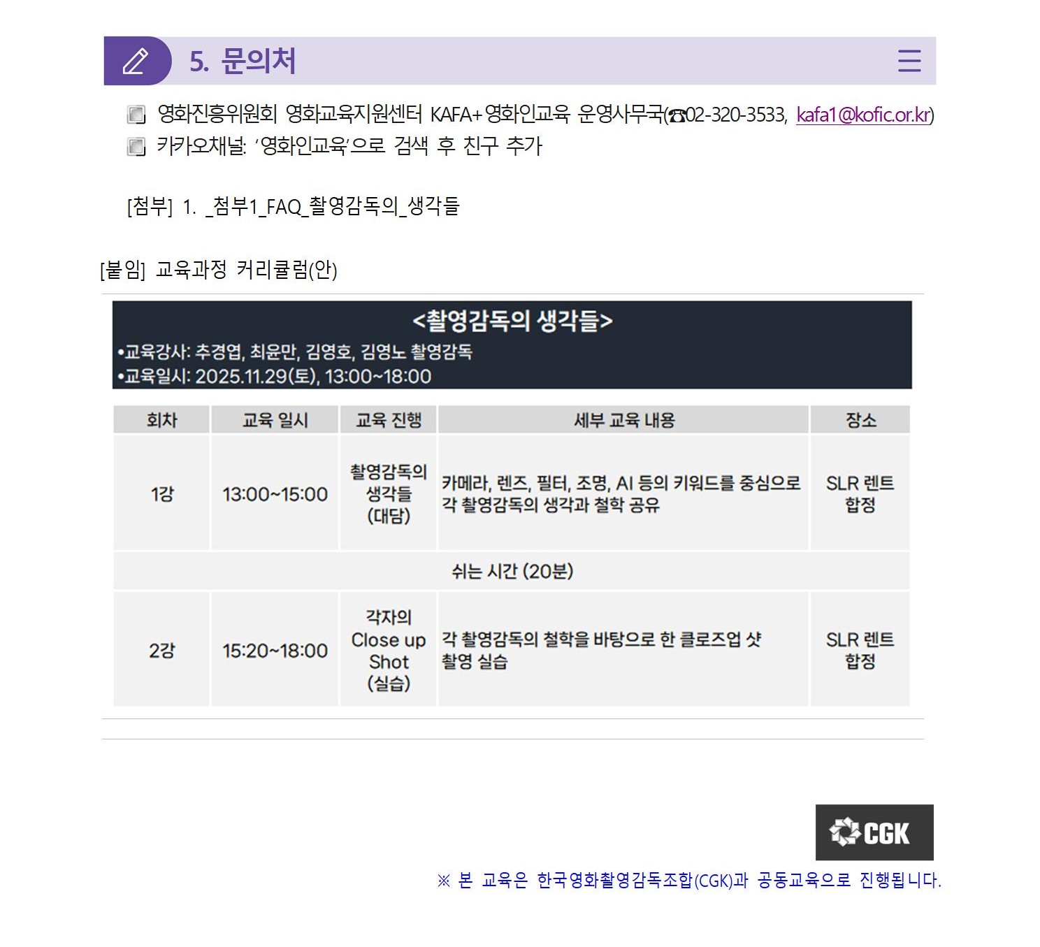 KAFA는 한국을 대표하는 영화 학교입니다.