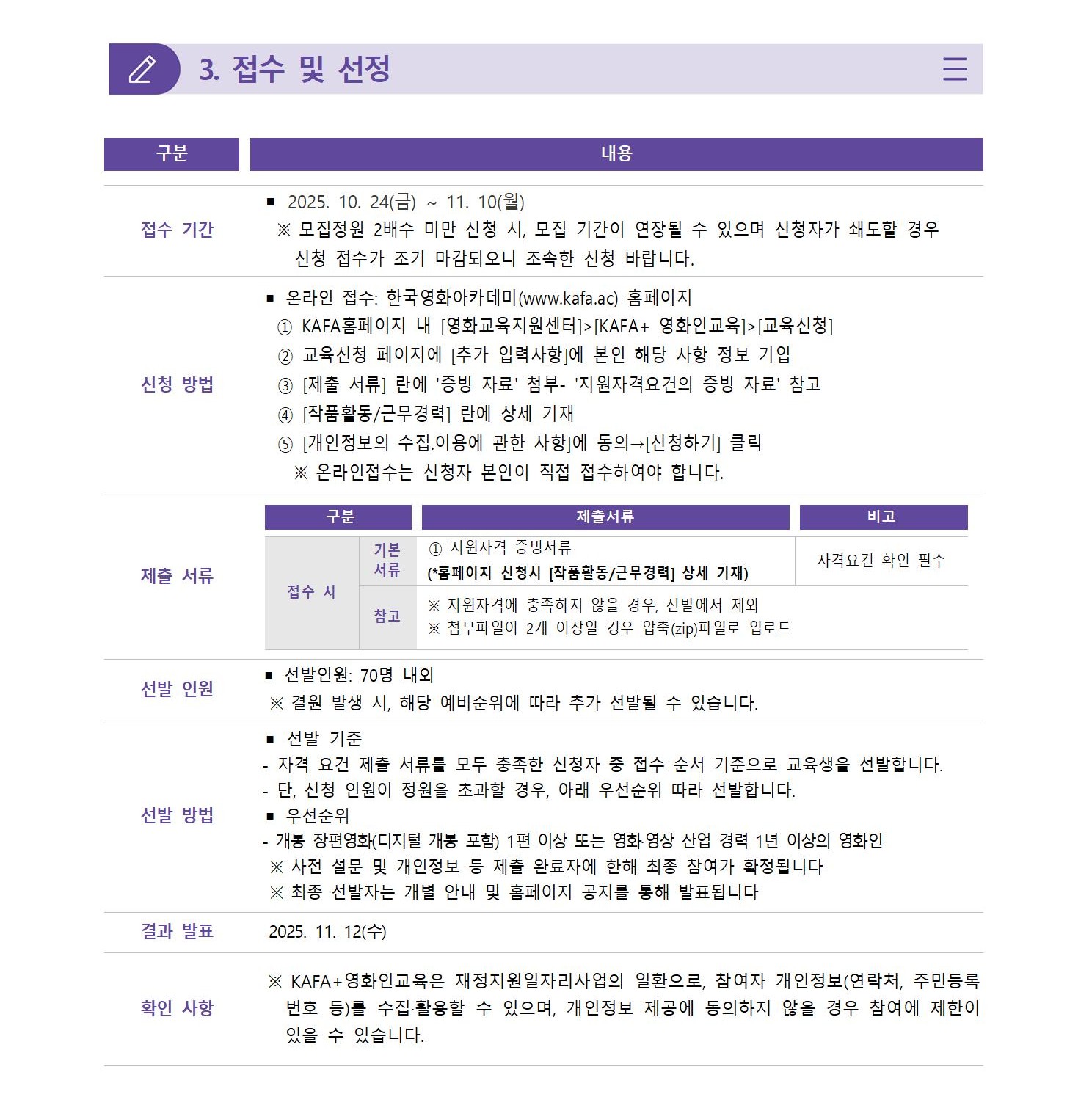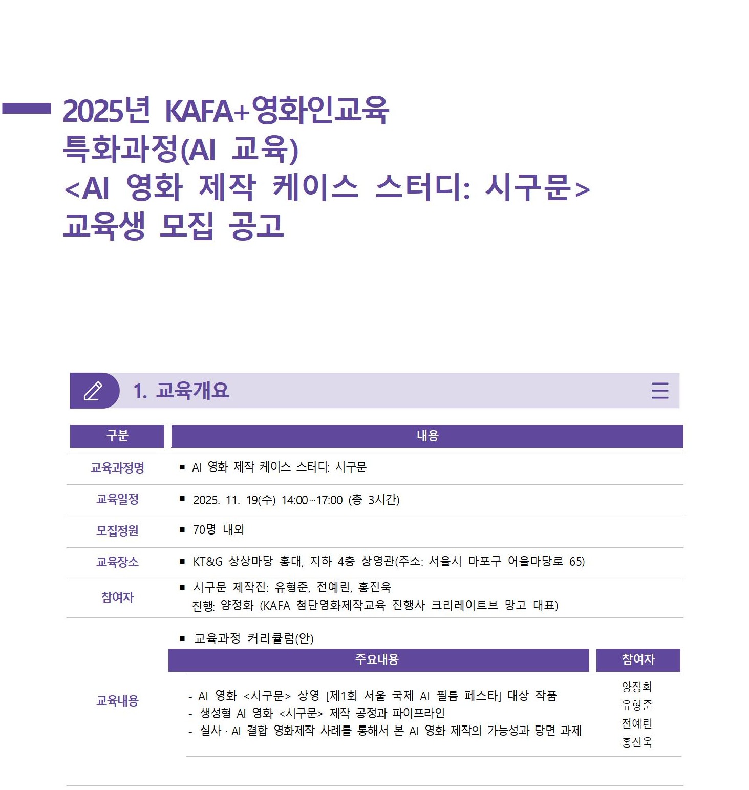 KAFA는 한국을 대표하는 영화 학교입니다.